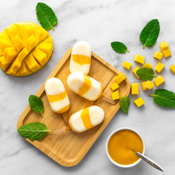 Lait entier de chèvre pasteurisé 82%, mangue 7,2%, sucre 5,9%, amidon, arômes naturels, jus concentré de citron, épaississant : pectines, ferments lactiques (lait)
